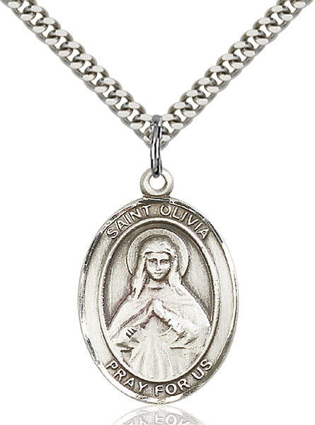 • Sterling Silver St. Olivia Pendant, Stainless Silver Heavy Curb Chain
