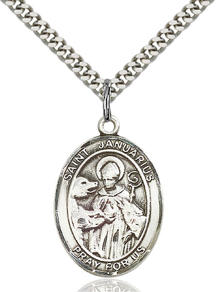 - Sterling Silver St. Januarius Pendant, Stainless Silver Heavy Curb Chain