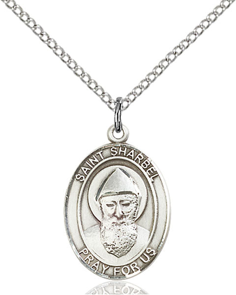 - Sterling Silver St. Sharbel Pendant, Sterling Silver Lite Curb Chain