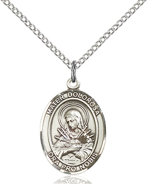 • Sterling Silver Mater Dolorosa Pendant, Sterling Silver Lite Curb Chain