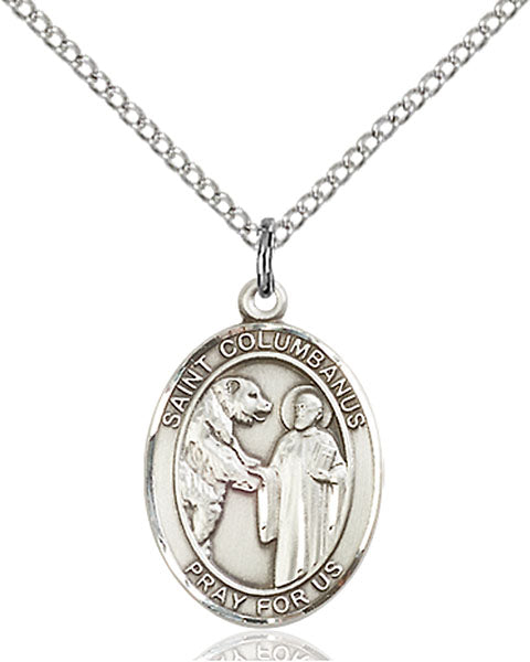 • Sterling Silver St. Columbanus Pendant, Sterling Silver Lite Curb Chain