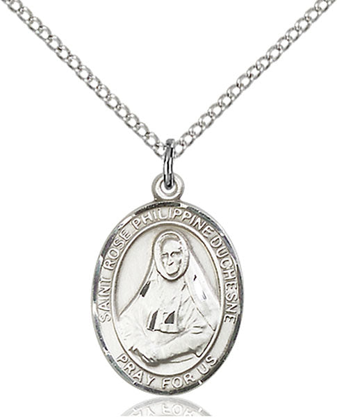 - Sterling Silver St. Rose Philippine Pendant, Sterling Silver Lite Curb Chain