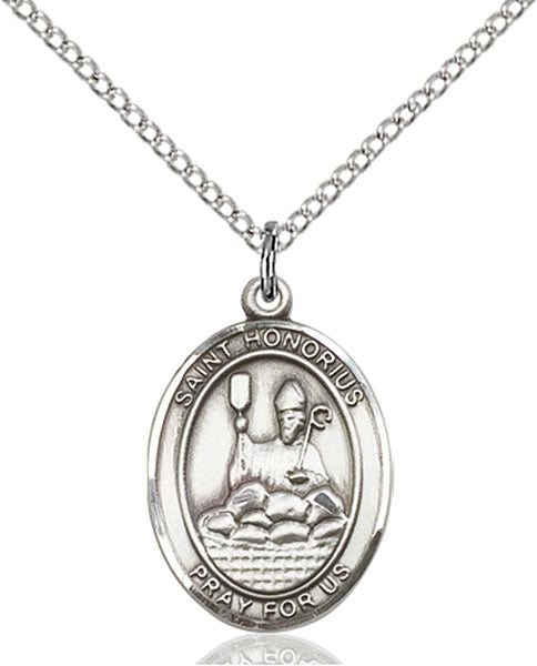 - Sterling Silver St. Honorius Pendant, SS Lite Curb Chain