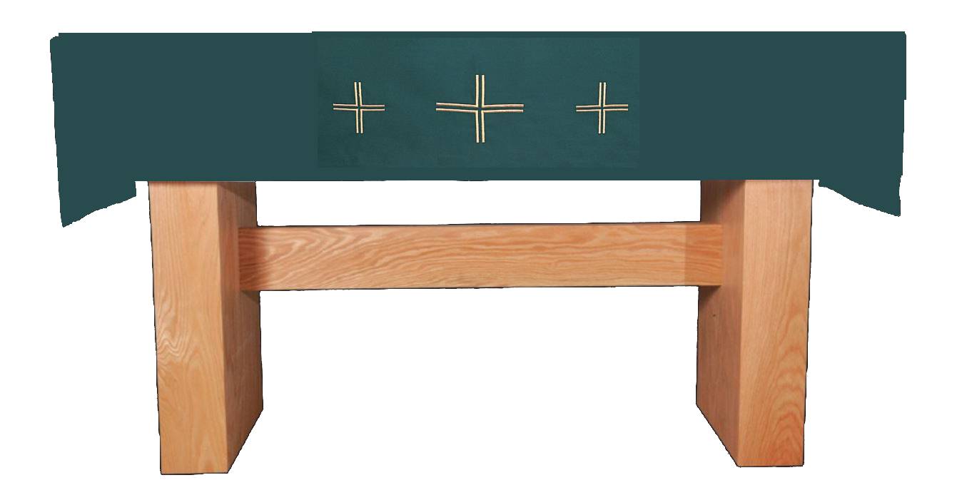 Design available on all white, blue, green, purple, or oyster cloth. Fabric is a blend of 50% rayon and 50% polyester. Maximum width of altar is 48". Please call to order!