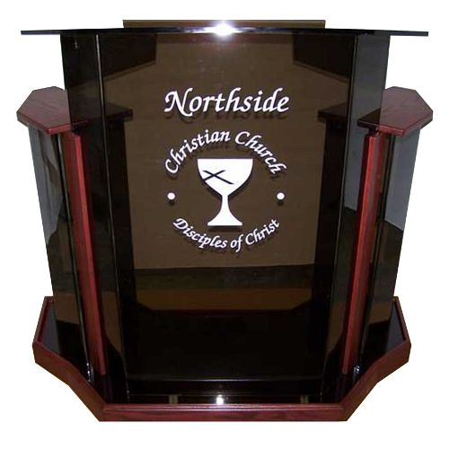 This truly beautiful acrylic wing lectern with wood accents will add a contemporary style to any sanctuary.