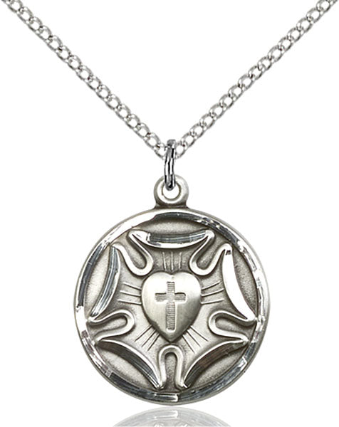 - Sterling Silver Lutheran Pendant, Sterling Silver Lite Curb Chain