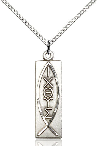 - Sterling Silver Fish Pendant, Sterling Silver Lite Curb Chain