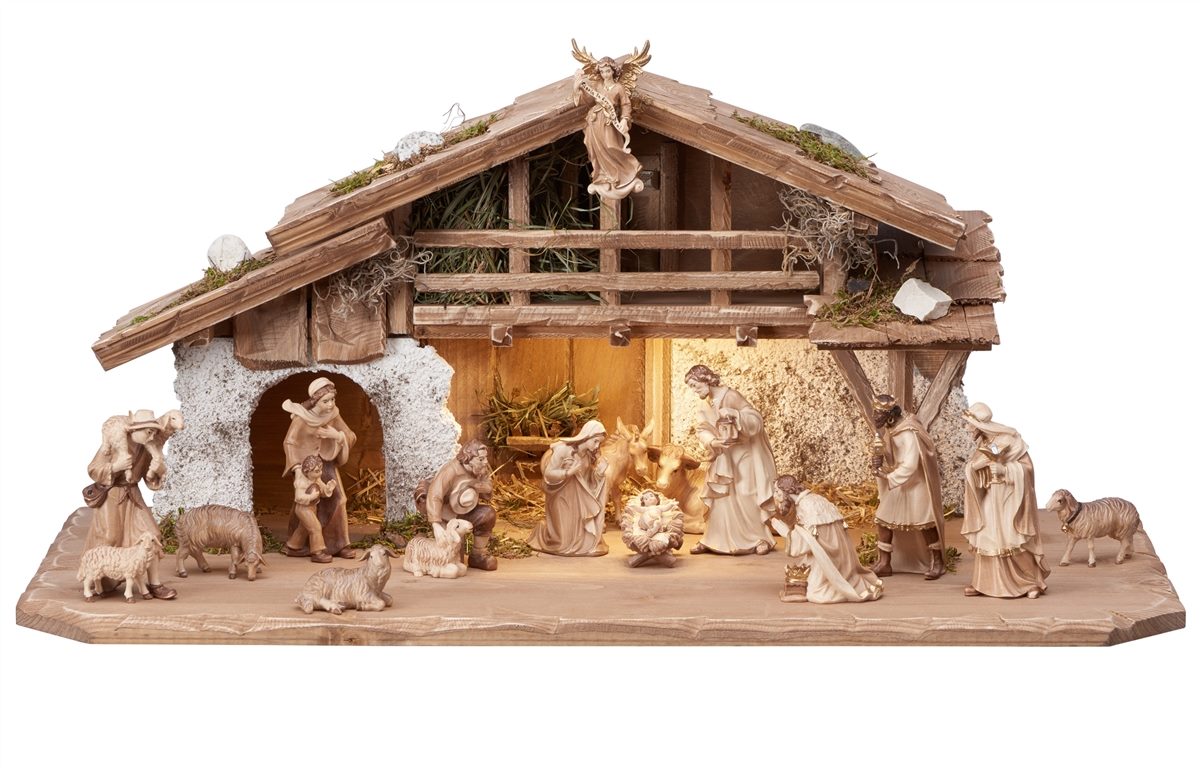 Kostner Nativity Set - Alpine Stable with Lighting