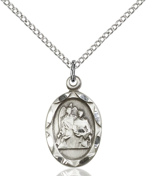 • Sterling Silver St. Raphael the Archangel Pendant, Sterling Silver Lite Curb Chain