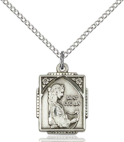- Sterling Silver St. Cecilia Pendant, 18 inch Sterling Silver Curb Chain