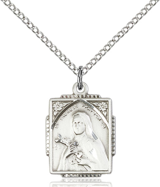 - Sterling Silver St. Therese Pendant, 18 inch Sterling Silver Curb Chain