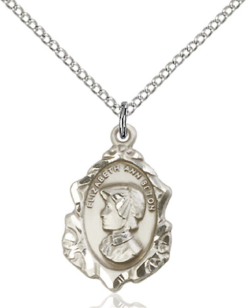 - Sterling Silver St. Elizabeth Ann Seton Pendant, Sterling Silver Lite Curb Chain