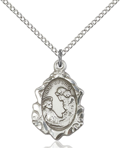 - Sterling Silver St. Cecilia Pendant, 18 inch Sterling Silver Curb Chain