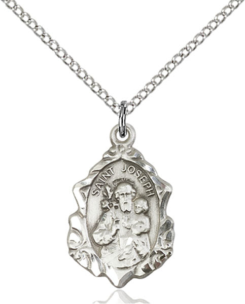 - Sterling Silver St. Joseph Pendant, 18 inch Sterling Silver Curb Chain