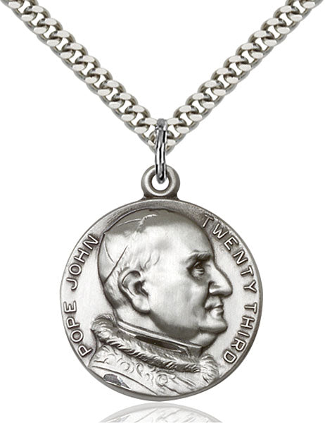 - Sterling Silver St. John XXII Pendant, Stainless Silver Heavy Curb Chain