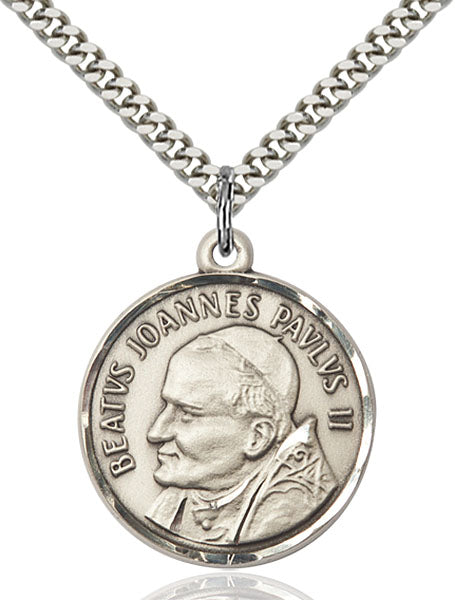 - Sterling Silver St. John Paul II Pendant, Stainless Silver Heavy Curb Chain