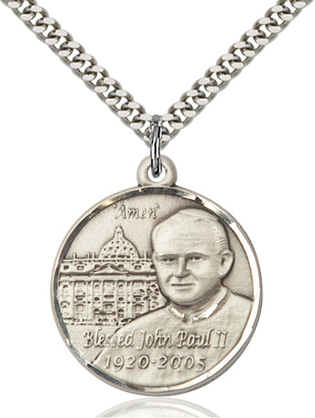 - Sterling Silver St. John Paul II Pendant, Stainless Silver Heavy Curb Chain