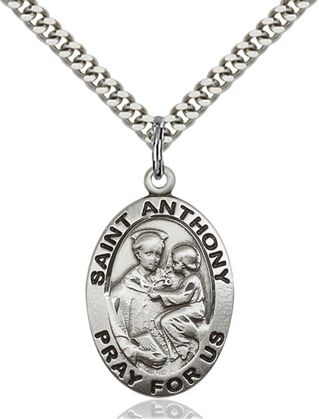 • Sterling Silver St. Anthony of Padua Pendant, Stainless Silver Heavy Curb Chain
