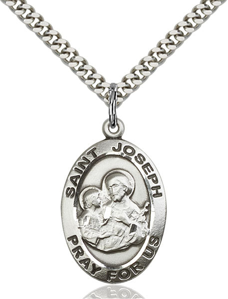 • Sterling Silver St. Joseph Pendant, Stainless Silver Heavy Curb Chain