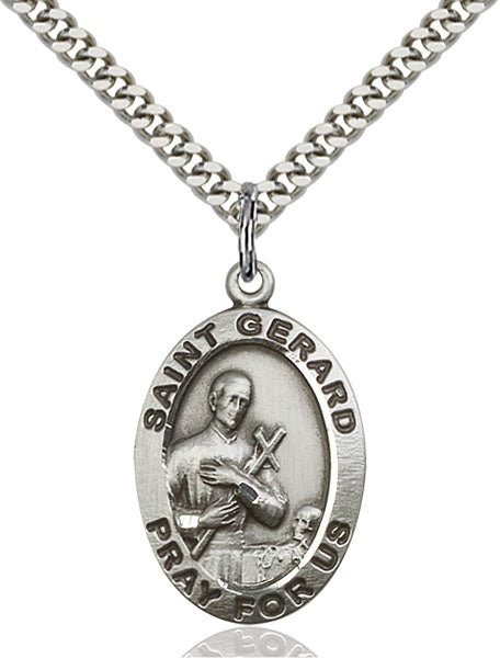 - Sterling Silver St. Gerard Pendant, Stainless Silver Heavy Curb Chain