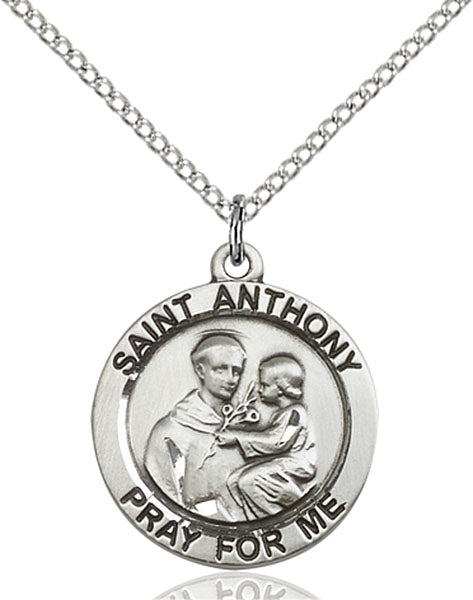 - Sterling Silver St. Anthony of Padua Pendant, Stainless Silver Lite Curb Chain