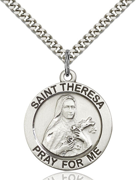 - Sterling Silver St. Theresa Pendant, Stainless Silver Heavy Curb Chain
