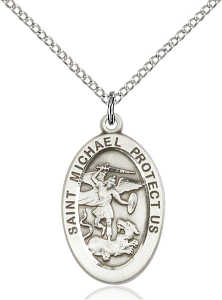 • Sterling Silver St. Michael the Archangel Pendant, Sterling Silver Lite Curb Chain