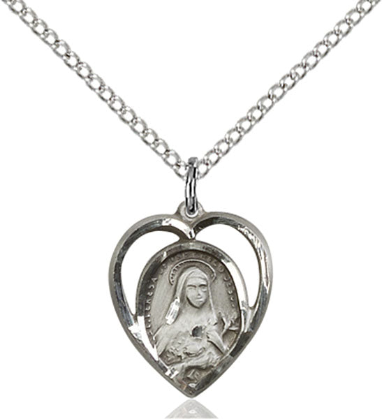 - Sterling Silver St. Theresa Pendant, Sterling Silver Lite Curb Chain