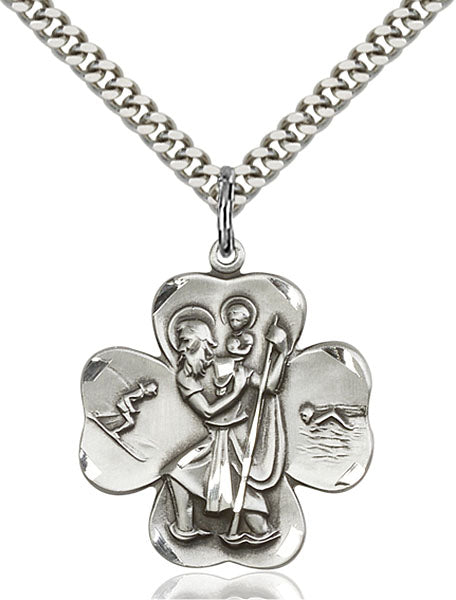 • Sterling Silver St. Christopher Pendant, Stainless Silver Heavy Curb Chain