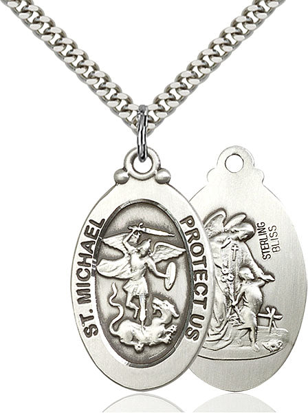 - Sterling Silver St. Michael the Archangel Pendant, Stainless Silver Heavy Curb Chain