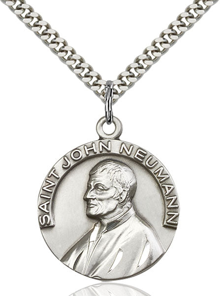 - Sterling Silver St. John Neumann Pendant, Stainless Silver Heavy Curb Chain