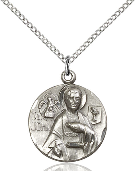 • Sterling Silver St. John the Evangelist Pendant, Sterling Silver Lite Curb Chain
