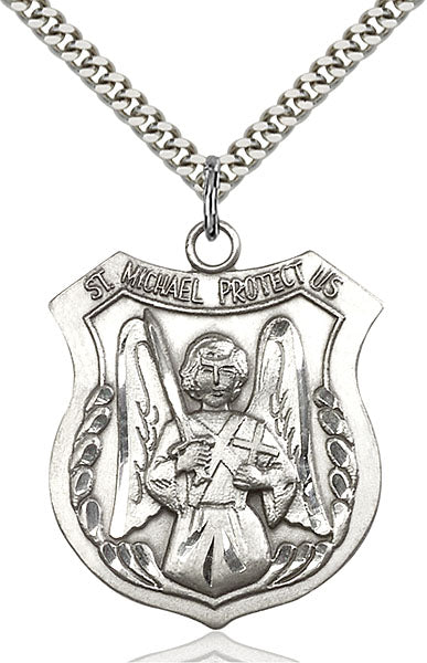 - Sterling Silver St. Michael the Archangel Pendant, Stainless Silver Heavy Curb Chain
