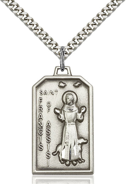 - Sterling Silver St. Francis Pendant, Stainless Silver Heavy Curb Chain