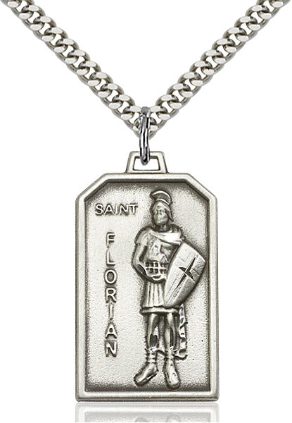 • Sterling Silver St. Florian Pendant, Stainless Silver Heavy Curb Chain