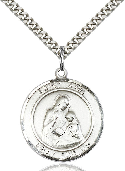 - Sterling Silver St. Ann Pendant, Stainless Silver Heavy Curb Chain