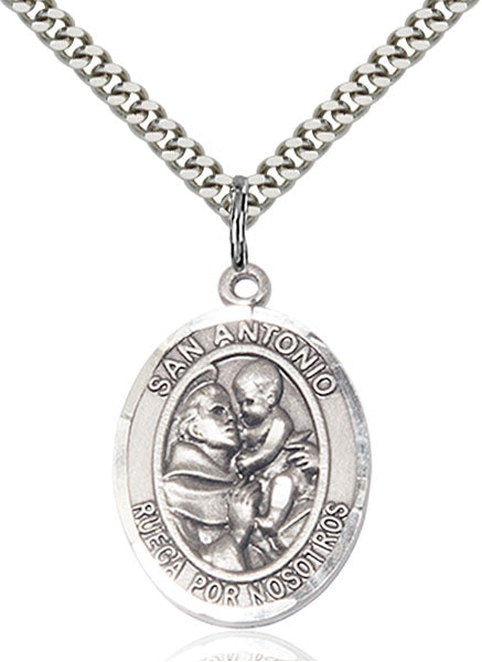 - Sterling Silver San Antonio Pendant, Stainless Silver Heavy Curb Chain