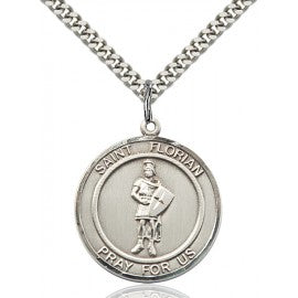 - Sterling Silver St. Florian Pendant, Stainless Silver Heavy Curb Chain