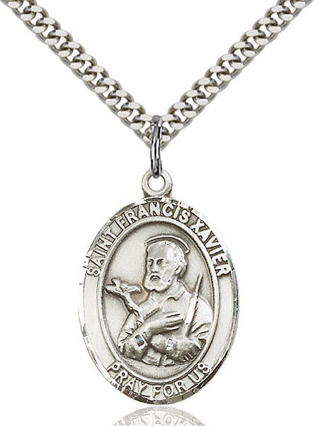 - Sterling Silver St. Francis Xavier Pendant, Stainless Silver Heavy Curb Chain