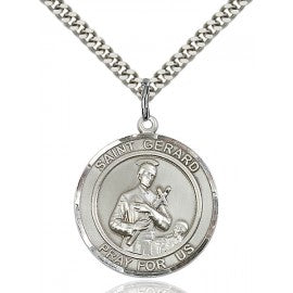 - Sterling Silver St. Gerard Pendant, Stainless Silver Heavy Curb Chain