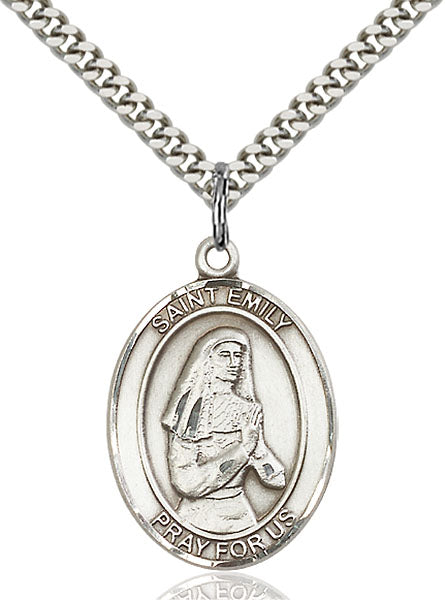- Sterling Silver St. Emily de Vialar Pendant, Stainless Silver Heavy Curb Chain