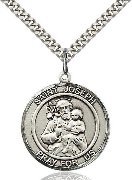 • Sterling Silver St. Joseph Pendant, Stainless Silver Heavy Curb Chain