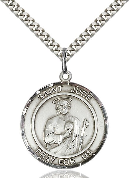 - Sterling Silver St. Jude Pendant, Stainless Silver Heavy Curb Chain