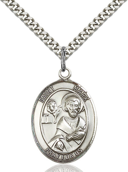 - Sterling Silver St. Mark the Evangelist Pendant, Stainless Silver Heavy Curb Chain