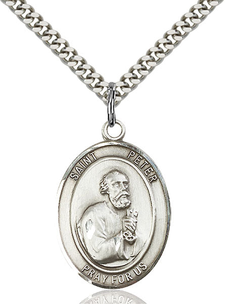 • Sterling Silver St. Peter the Apostle Pendant, Stainless Silver Heavy Curb Chain