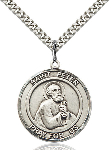 - Sterling Silver St. Peter the Apostle Pendant, Stainless Silver Heavy Curb Chain