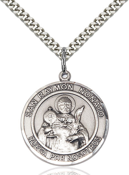 - Sterling Silver San Raymon Nonato Pendant, Stainless Silver Heavy Curb Chain