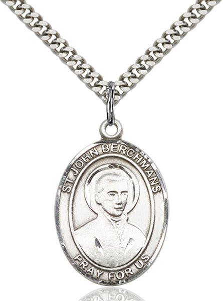 - Sterling Silver St. John Berchmans Pendant, Stainless Silver Heavy Curb Chain