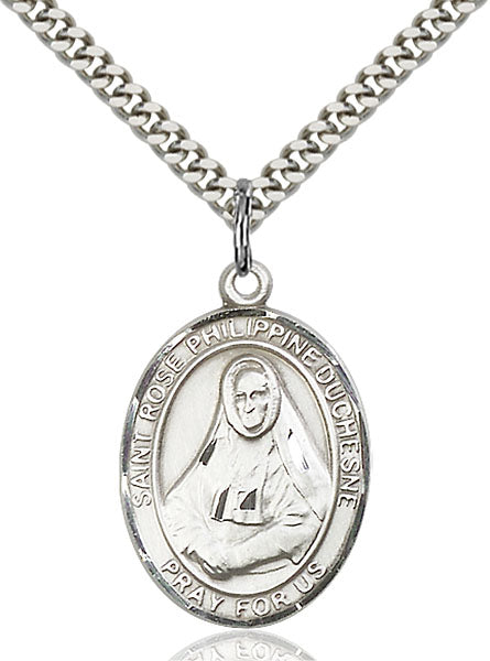 • Sterling Silver St. Rose Philippine Pendant, Stainless Silver Heavy Curb Chain