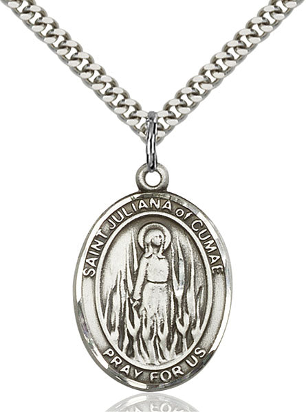 • Sterling Silver St. Juliana Pendant, Stainless Silver Heavy Curb Chain